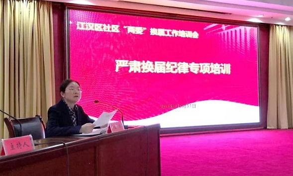 江汉区社区“两委”换届工作巡回督导组全体成员,各街道负责换届工作的领导干部共计300余人参加培训。