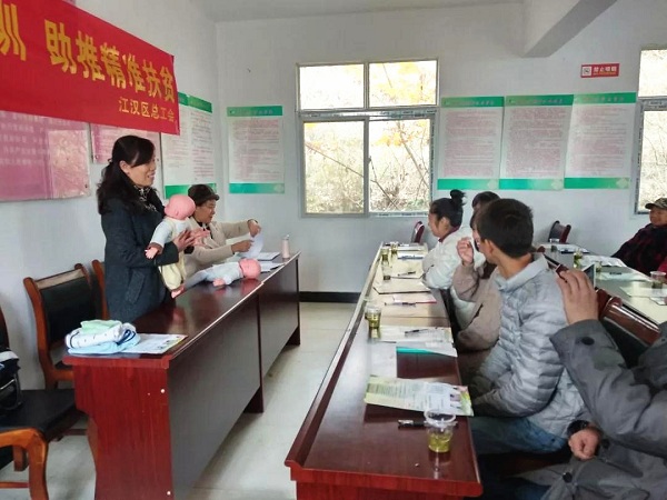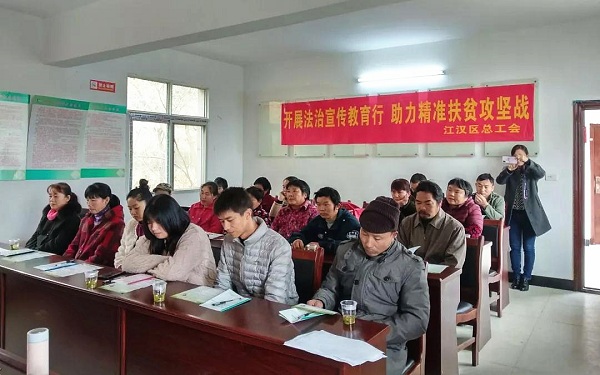 11月16日,江汉区总工会精准扶贫就业创业培训班在黄陂区蔡店街港口村开班,在驻村工作队前期调研摸底,并征求意见的基础上,来自结对村的20余名建档贫困户、留守妇女、农村闲散劳动力等村民代表参加培训。