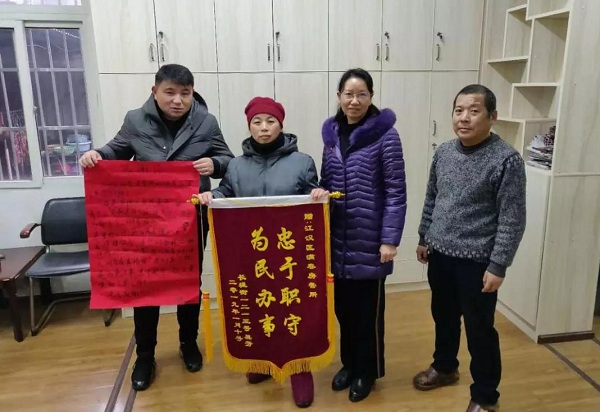 1月11日一大早,家住江汉区满春辖区长堤街1213号的居民吴女士把一面绣有“为民办事,忠于职守”的锦旗和一封致区房地公司满春房管所的感谢信送到该所,由衷感谢该所为居民群众贴心服务、排忧解难。