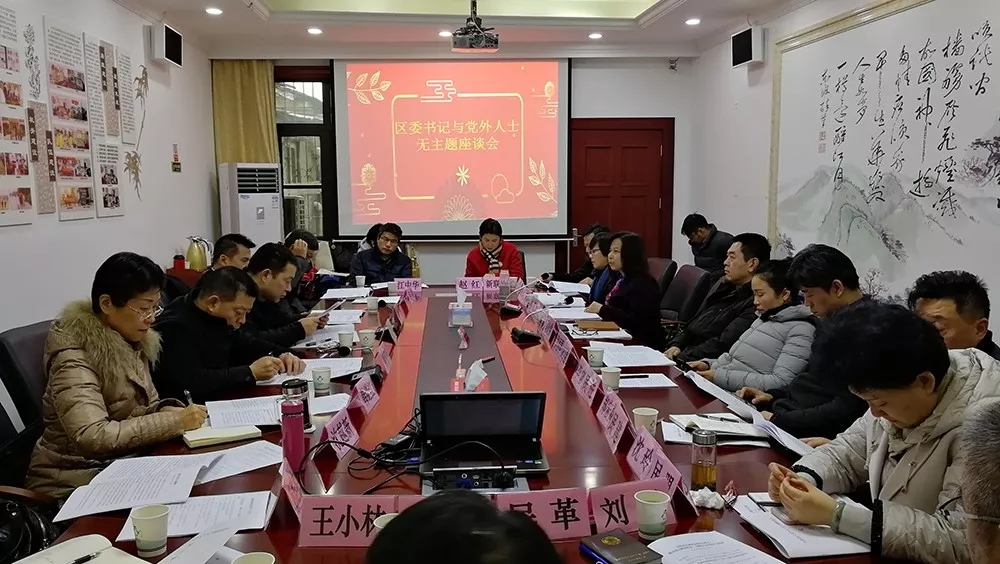 2月12日上午,江汉区委书记张俊勇,区委常委、组织部部长许华,区委常委、统战部部长唐宏兴等区领导与区党外人士在区党派大楼举行无主题座谈。