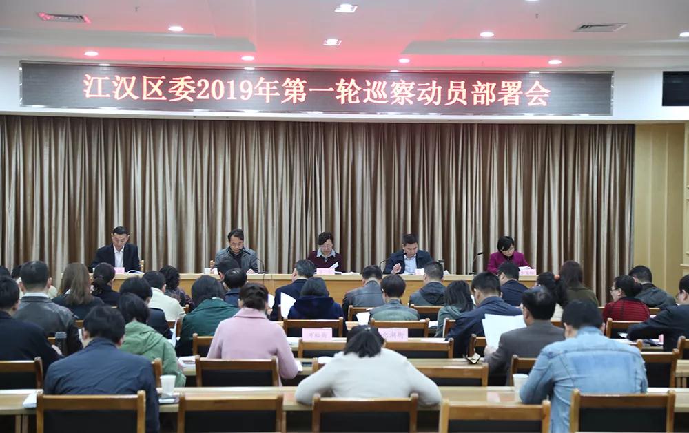 4月1日上午,江汉区委2019年第一轮交叉巡察及社区党组织巡察动员部署会在区机关五楼多功能厅召开,标志着区委2019年第一轮巡察工作全面启动。会议由区委常委、区委组织部部长、区委巡察工作领导小组副组长许华主持,区委常委、区纪委书记、区监委主任、区委巡察工作领导小组组长秦红出席会议并讲话。