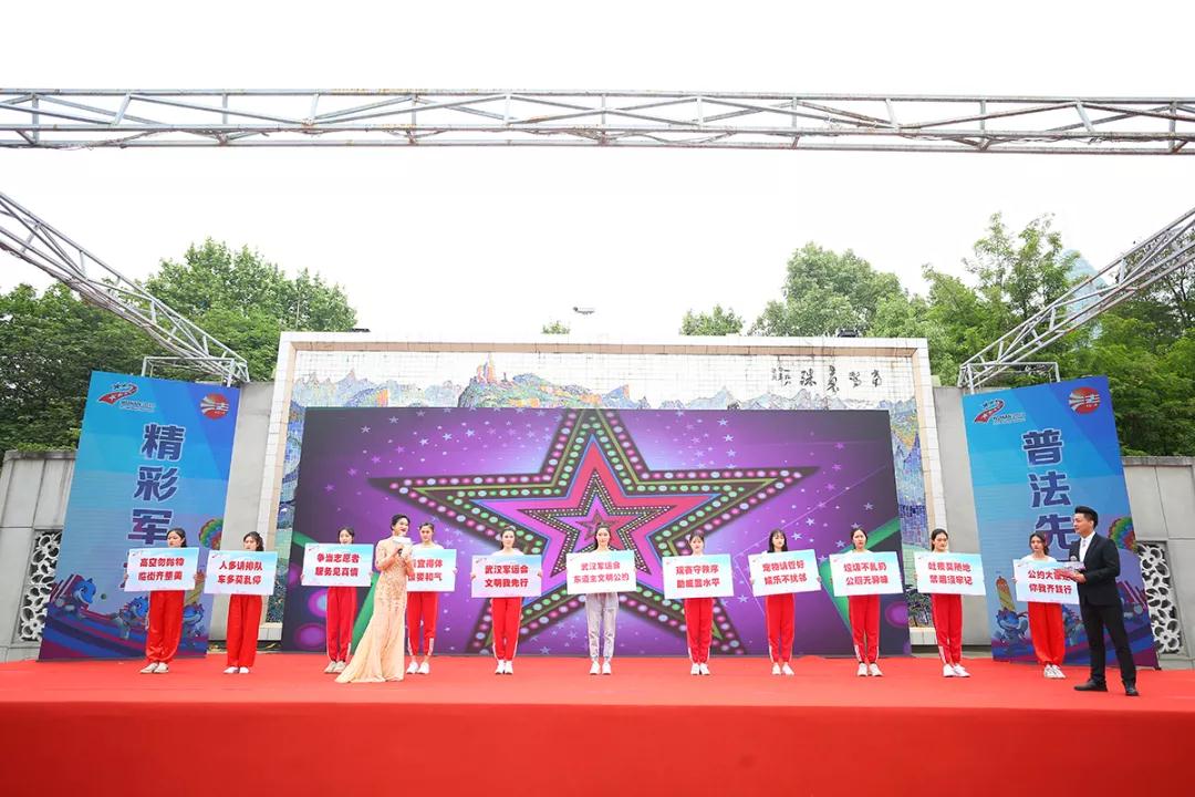 4月27日上午,武汉市“精彩军运 普法先行”主题宣传活动启动仪式在中山公园隆重举行。