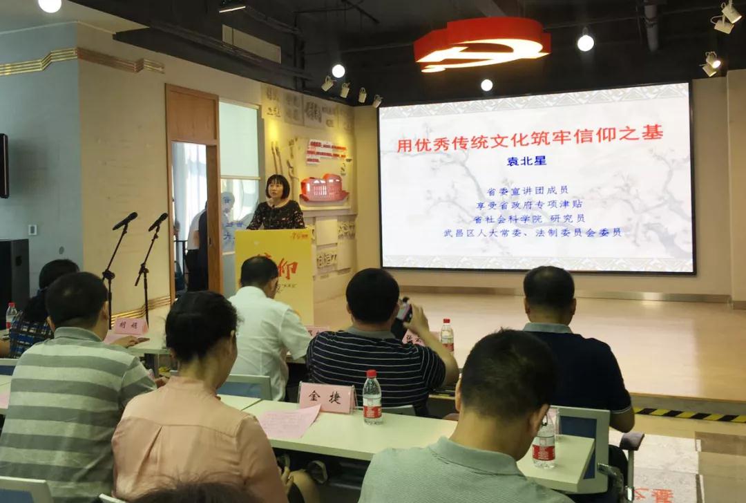活动特邀嘉宾湖北省社科院副院长袁北星,在《用优秀传统文化筑牢信仰之基》的主题宣讲中,从“我们的信仰强调敬畏之心”“我们的信仰注重道德养成”“我们的信仰涵育家国情怀”三个方面,阐释了在不同时代背景下信仰的不同意义和内涵。