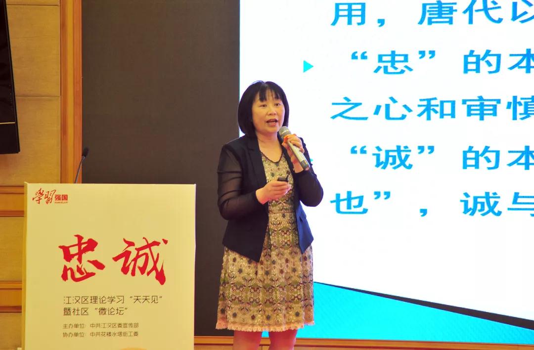 6月25号上午,江汉区理论学习“天天见”暨社区“微论坛”活动在江汉路中心百货26楼会议室举行。本场活动由江汉区委宣传部主办,花楼水塔街工委协办,以“忠诚”为主题,读金句语录、颂经典文章、锤炼政治品格、涵养政治生态。