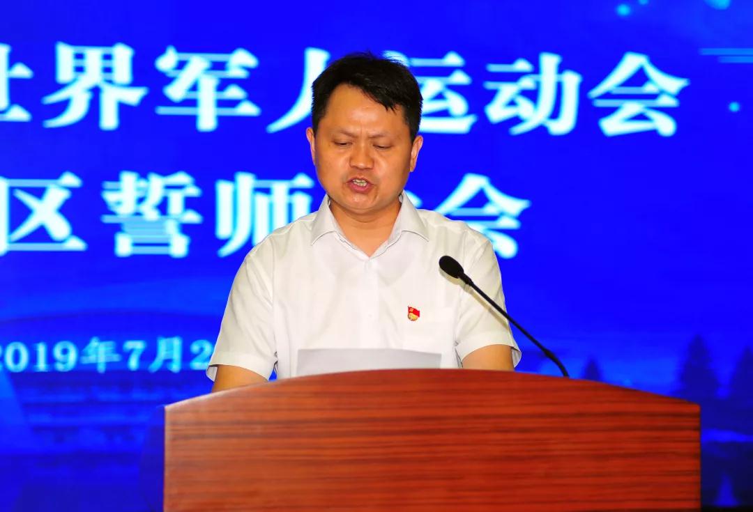在区委常委、常务副区长张劲的监誓下,副区长张智勇,军运会志愿者城市大使、长江日报高级记者余熙,爱帝集团董事长胡爱娣带领军运会江汉区功能品质提升行动指挥部、军运会足球(江汉)竞赛委员会、区军运会城市行动指挥部部门负责人宣誓。