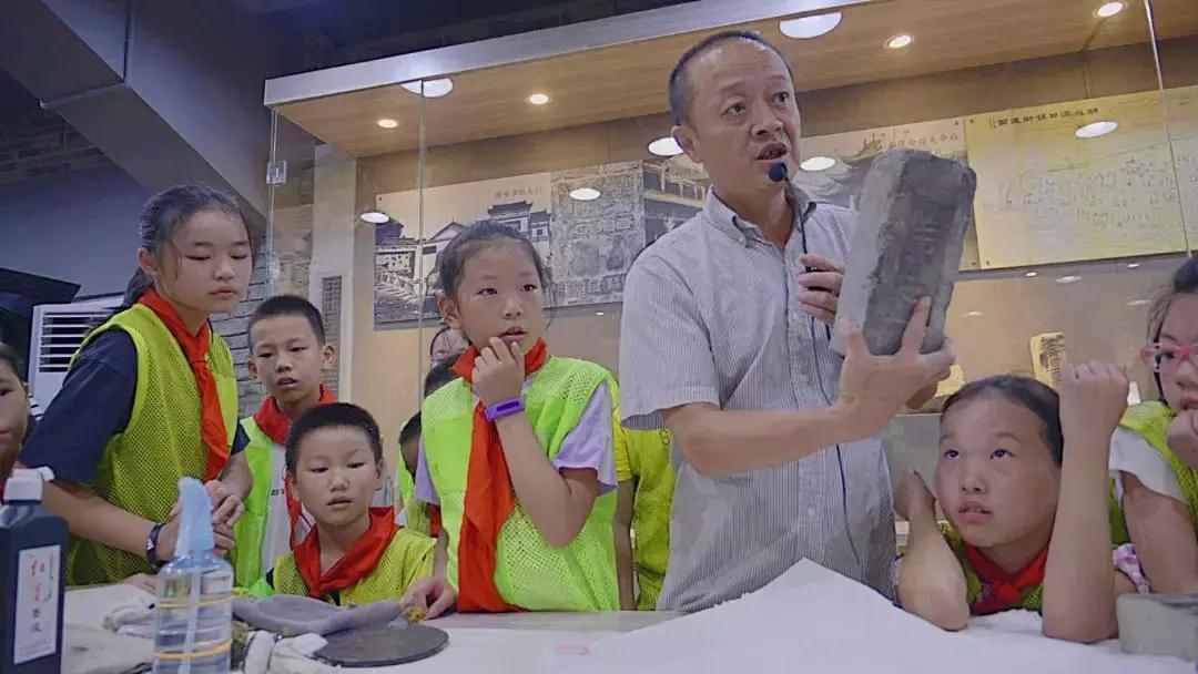 湖北省级非遗项目——金石器物全形传拓技艺代表性传承人张友海老师还为大家展示了传拓技艺,孩子们认真学习、跃跃欲试,在张老师的指导下切身体验了这一传统技艺。