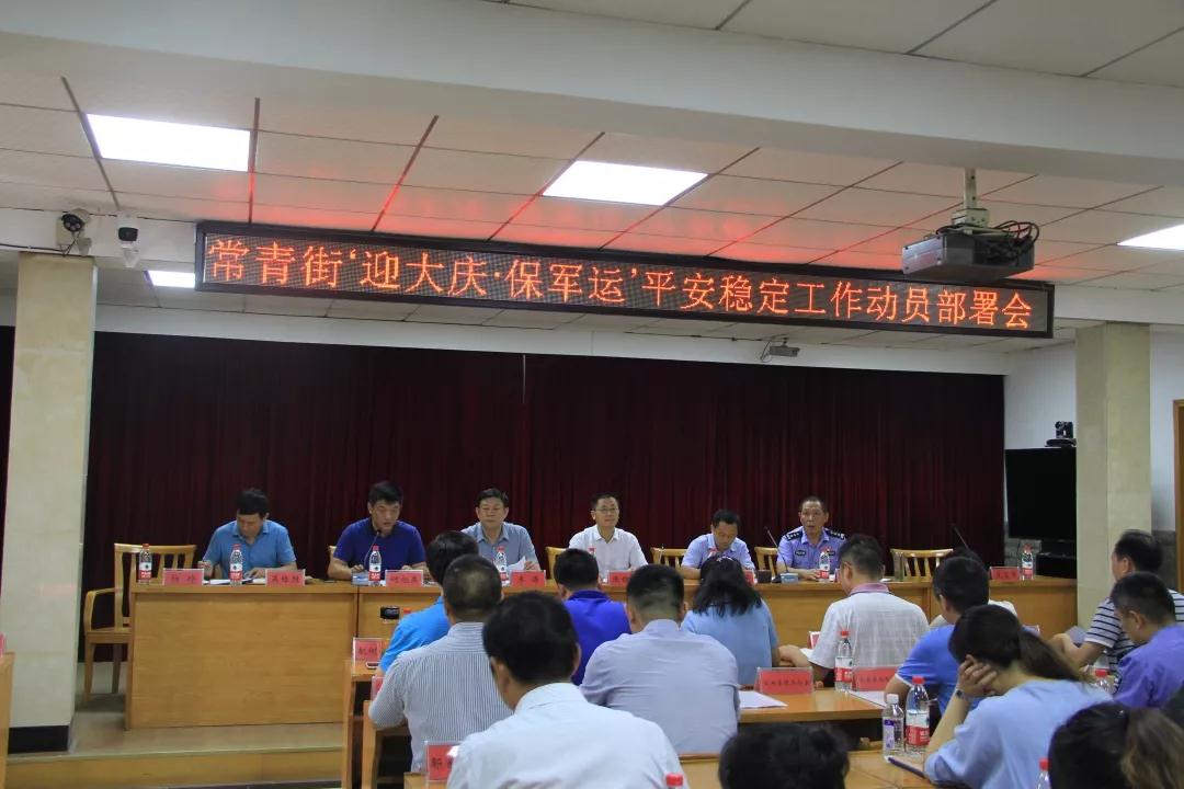 9月3日下午,常青街在“迎大庆、保军运”平安稳定工作动员部署会上成立了平安稳定指挥部,建立了“一部两室四组”工作机制,形成了“横纵联防、专群联控、全街协调、以点带面”大会战格局。区长李湛,区委副书记、政法委书记陈红山到会指导。
