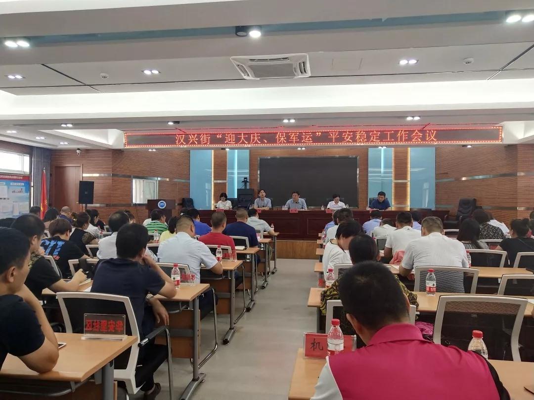 9月3日,区长李湛参加汉兴街“迎大庆、保军运”平安稳定工作会议,从责任、任务和纪律等三个方面提出具体工作要求和指示。街道表示将加强组织领导,提高思想认识,严格执行战时纪律,落实24小时值班制度,强化各类隐患排查、整治,坚决打好“迎大庆、保军运”平安稳定保卫战。