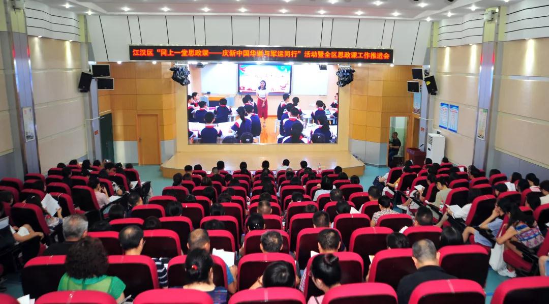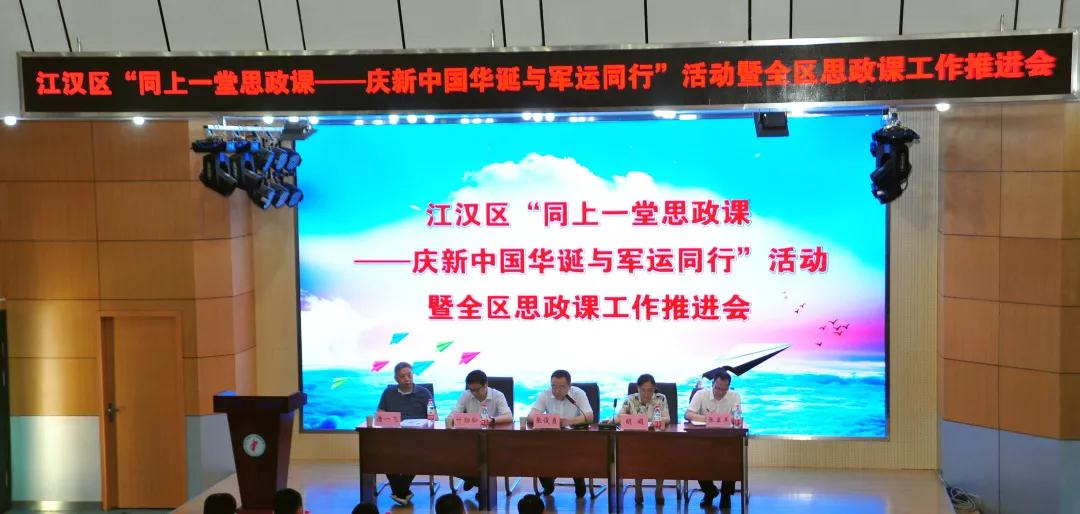 9月12日上午,江汉区“同上一堂思政课——庆新中国华诞与军运同行”活动暨全区思政课工作推进会,在武汉市第十二初级中学报告厅举行。区委书记张俊勇等区领导深入课堂与同学们同上思政课,区委教育工作领导小组成员单位负责人和全区初中万余名师生通过网络同步收看。