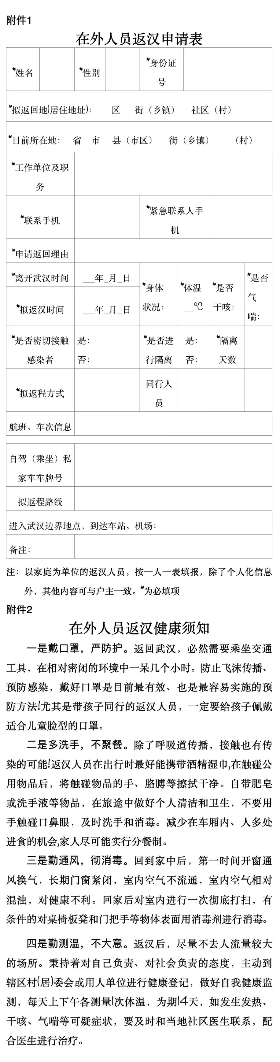 2.在外人员返汉健康须知