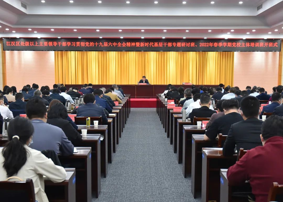 4月7日上午,江汉区处级以上主要领导干部学习贯彻党的十九届六中全会精神暨新时代基层干部专题研讨班、2022年春季学期党校主体培训班开班式举行。区委书记李湛出席并作辅导报告。区委副书记、区委统战部部长周先荣主持开班式。