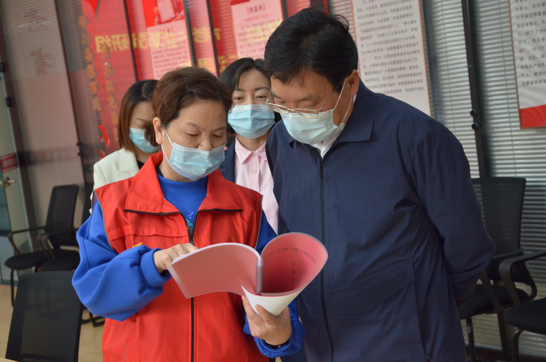 在常青街富豪社区“老党员之家”,徐波仔细翻阅社区老党员开展党史宣讲、服务群众等活动的纪实资料,察看图书阅览室、健康小屋、党员小柜、学习议事厅等“三室一厅”功能区,并与社区“银发宣讲团”和“银发管家团”的部分老同志亲切交谈,观看江汉区老干部工作融入城市基层治理宣传片,详细了解党建引领老干部工作融入基层治理试点情况。