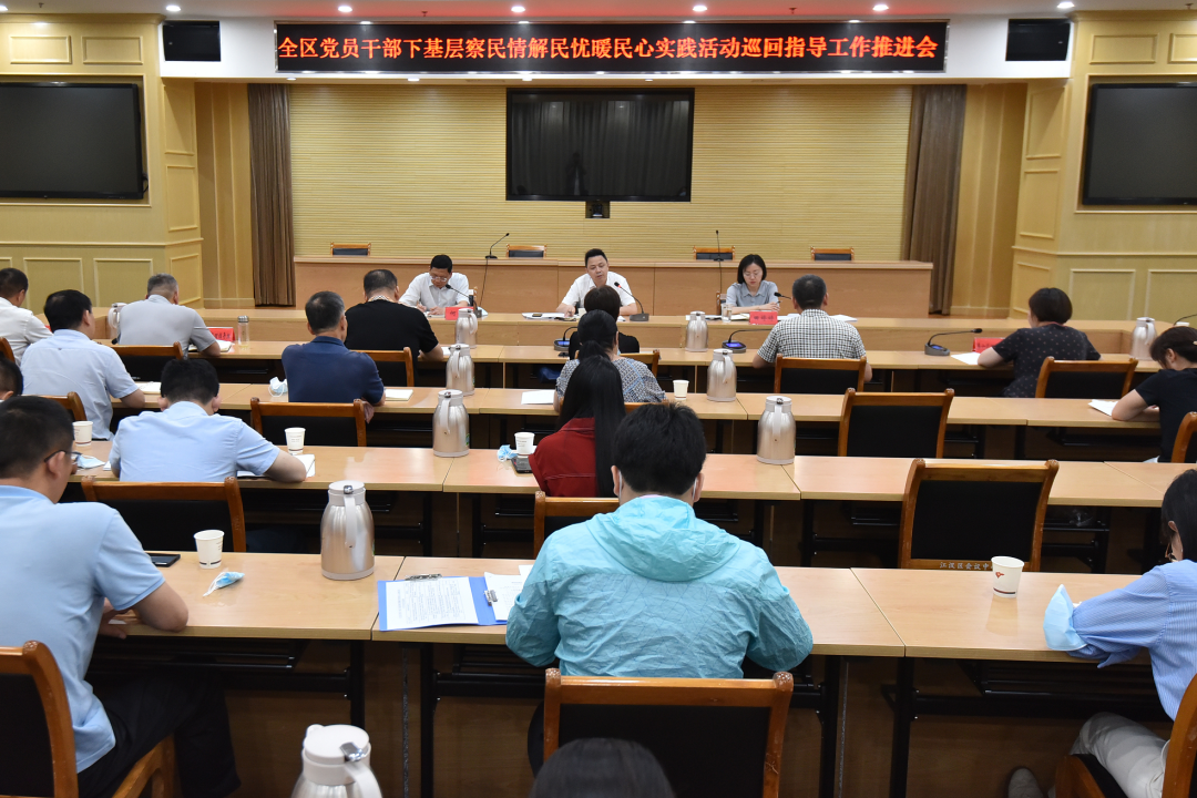 6月21日上午,江汉区召开党员干部下基层察民情解民忧暖民心实践活动巡回指导工作推进会。区委党史学习教育领导小组办公室指导考核组有关负责同志和区委各巡回指导组组长、副组长、成员参会。