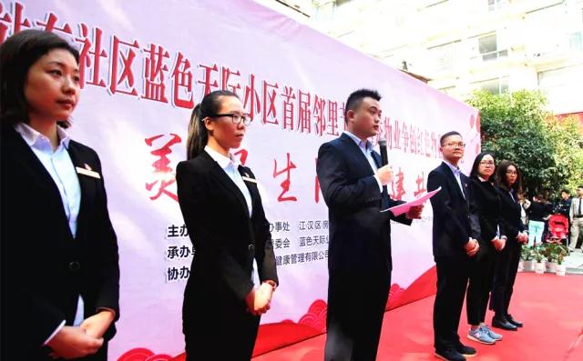 10月28日,正值传统节日重阳节。“美好生活,共建共享”江汉区唐家墩街站东社区蓝色天际小区首届邻里节暨越秀物业争创红色物业誓师大会举行。
