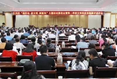 追求极致,全域示范。8月3日,江汉区召开“迎军运讲文明树新风”主题活动推进会暨第二季度文明程度指数测评讲评会,对整区推进“迎军运”工作的统筹协调、环境整治、宣传发动、扩充力量进行再动员、再部署,打好军运保障“攻坚战”。区委、区人大、区政府、区政协、各街道及部门、辖区文明单位等500余人参会。