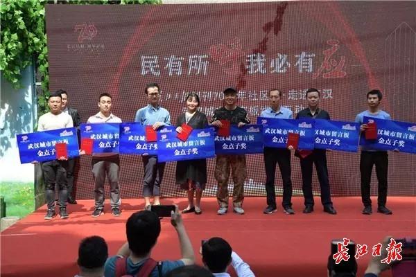 上午,江汉区人民政府区长李湛为卢丰、廖金兰、龙欢、鄢文、李益、沈亦民、徐光宏、徐勇8位网友颁发了“金点子奖”。