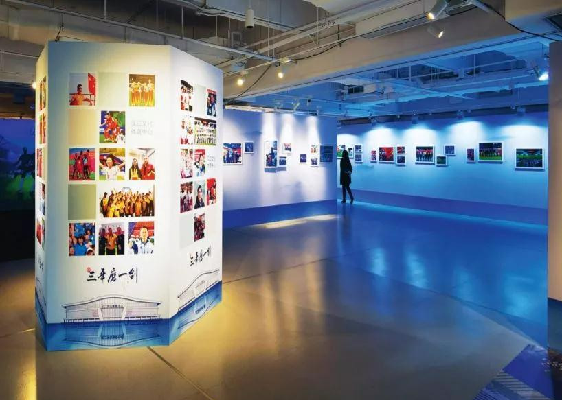 12月23日,汉口文化体育中心“三年磨一剑”主题展览开展。一楼展厅内,100余幅照片精心陈列,以“筑城”“圆梦”“化人”三个篇章,展示了场馆在修缮升级、备赛军运、赛事保障、复合利用等阶段的动人瞬间。相比于传统图片展,此次展览引入了多项新技术,观众可在体感互动区参与“点球大战”、在VR体验区360°畅游场馆、在拍照体验区爬上民生银行楼顶与场馆“极限同框”……