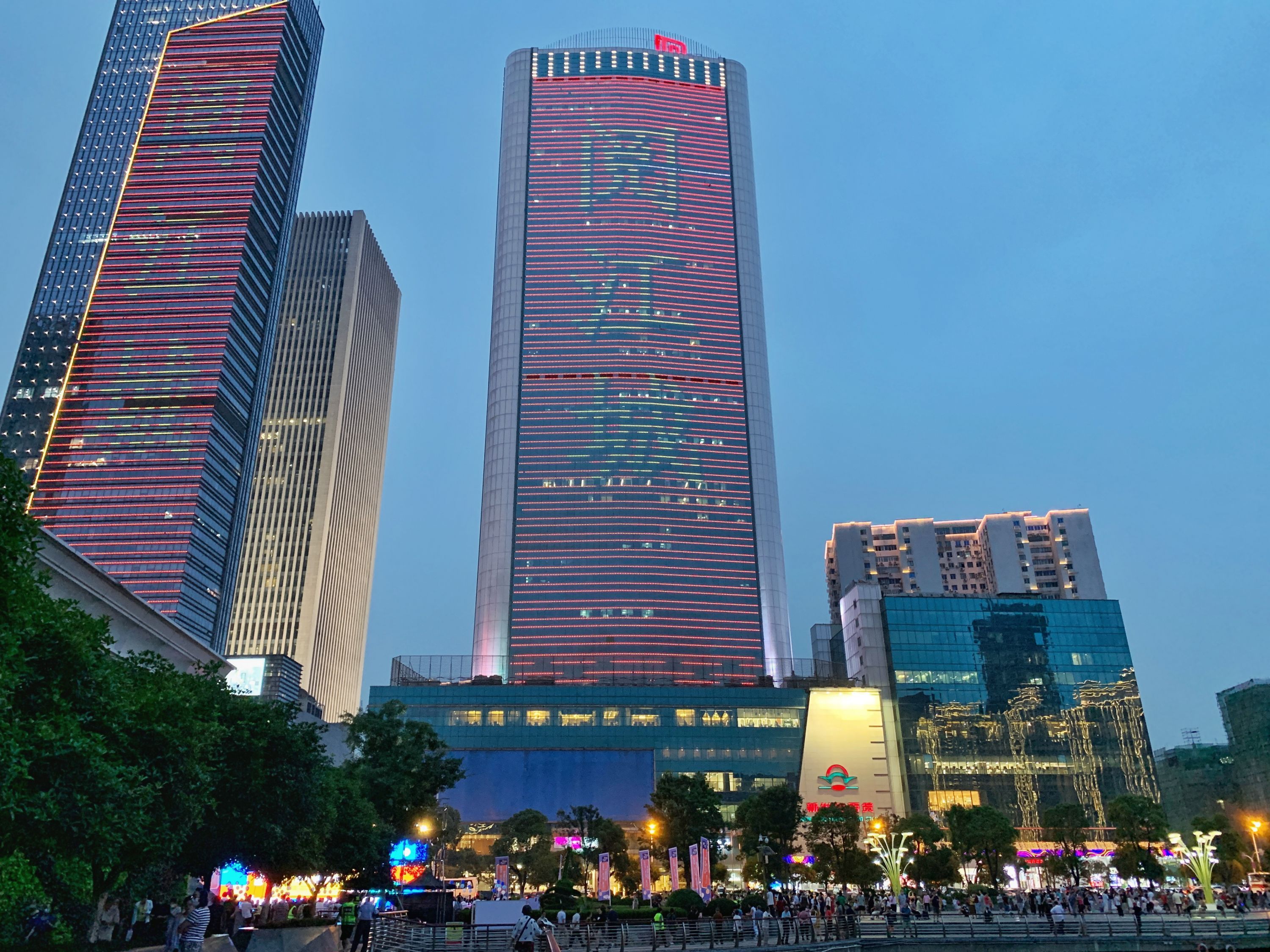 数座高楼点亮外墙灯幕,欢迎高校学子的到来。