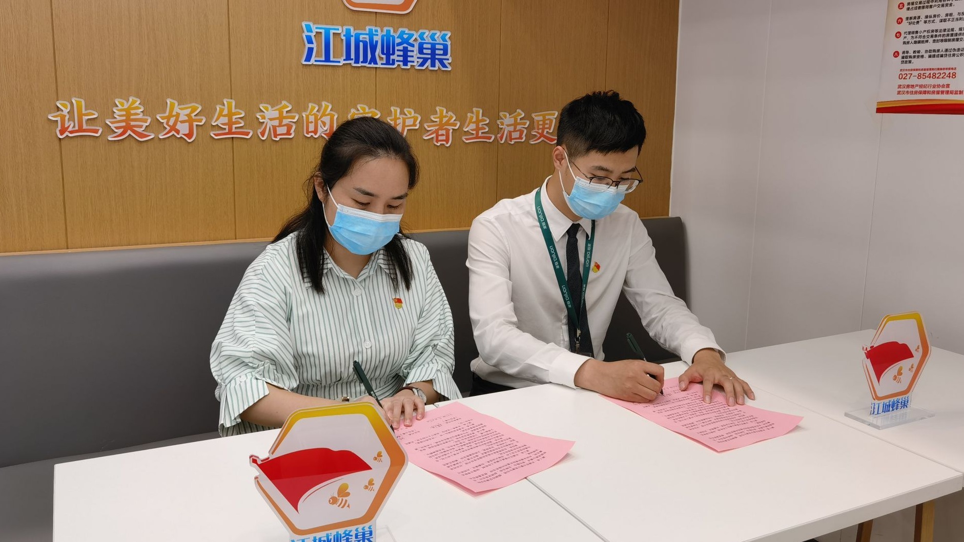8月25日,江汉区唐家墩街道5家链家门店分别与所在社区党组织签订共驻共建协议,向“快递小哥”和房地产中介的4名流动党员派发包含“五个一”(一枚党员徽章、一本党章、一面党旗、一本党史书籍、一本学习手册)的红色礼包。