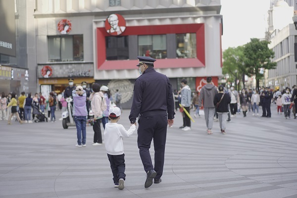 4月10日,江汉路上游人如织。姚正国却满脸认真,在熙熙攘攘人群中“搜索”着街上孩子们的一举一动。