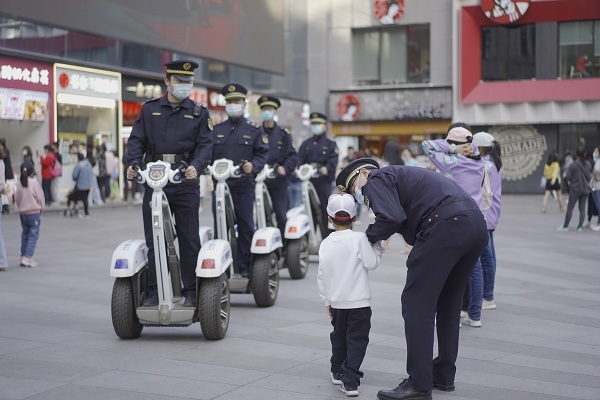 姚正国说,在巡逻过程中,他们摸索出了一套“找娃”的办法,即“一看二问三哄四找”工作法:队员在街上看到孤身一人、四处张望的小孩,就会留意是否为走丢小孩;马上主动上前询问家长电话和姓名,掌握孩子基本信息;当孩子情绪不稳定,都会准备糖果、小玩具等,哄孩子开心;同时通过城市监控平台,工作群、手台调度,队员巡逻、联系警方等方式,寻找小孩行动轨迹。