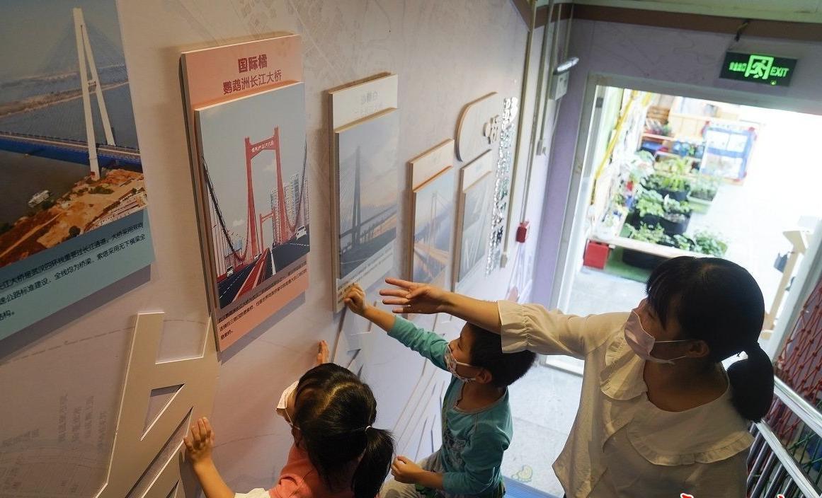 “小朋友们,你们见过这座武汉长江大桥吗?它可有着‘万里长江第一桥’的美称!”5月16日,武汉市江汉区百灵幼儿园内的“桥梁博物馆”里,老师带着孩子们边走边参观,细细介绍桥梁知识。在“5·18”国际博物馆日前夕,该园师生共同创设的“桥梁博物馆”开馆。