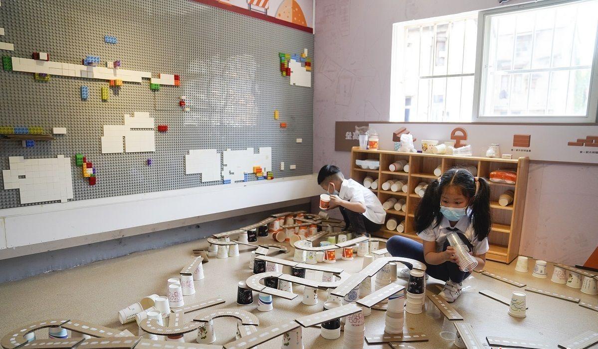 第二层和第三层楼梯间分别以“中国桥梁”“世界桥梁”为主题,图文并茂介绍了各地有趣的桥梁知识。楼梯间内有一座大桥造型的书架,里面放置着与桥有关的绘本。上下楼梯之间,小朋友们不仅认识了武汉多姿多彩的桥梁,还能席地而坐,捧着绘本阅读与桥有关的故事。“桥梁博物馆”的顶层有各种纸板、纸杯、积木等材料,小朋友可以坐在这个小空间里动手拼搭出自己心目中的桥梁。