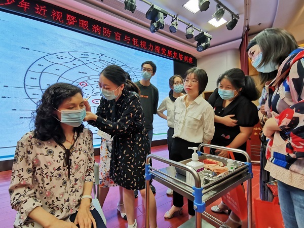 6月12日,武汉市江汉区卫生健康局、湖北省中西医结合医院邀请眼科专家、中医专家,为江汉区部分试点学校保健教师、基层医院医护开展中医药适宜技术防控青少年近视暨眼病防盲与低视力视觉康复培训。来自江汉区8所试点服务学校、6家试点实施单位的分管副校长、保健老师、分管副院长、医护人员共同“充电”学习。
