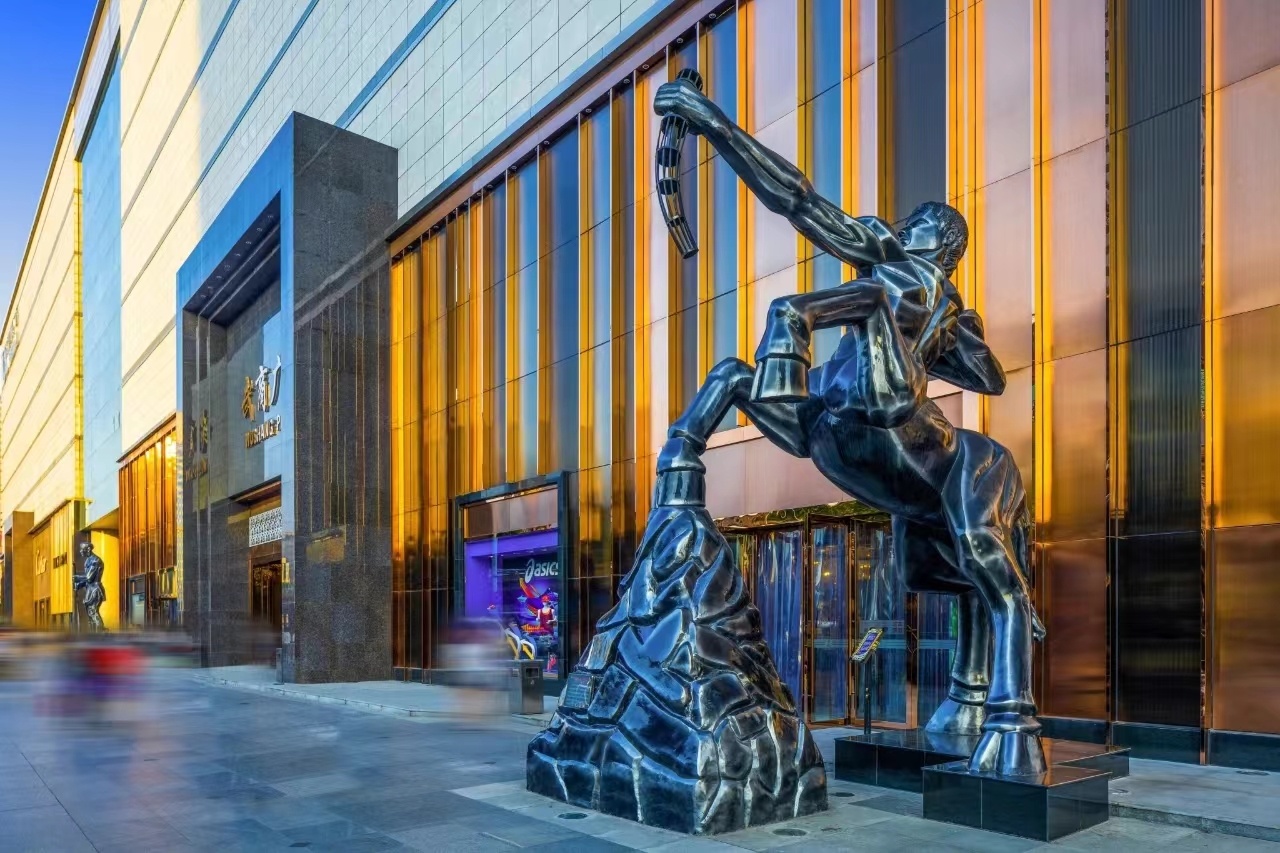 在江汉区各大商圈,富有现代气息的雕塑也比比皆是,它们不仅作为商业体的“地标”,也为城区环境增添了几分浪漫、趣味和艺术气息。