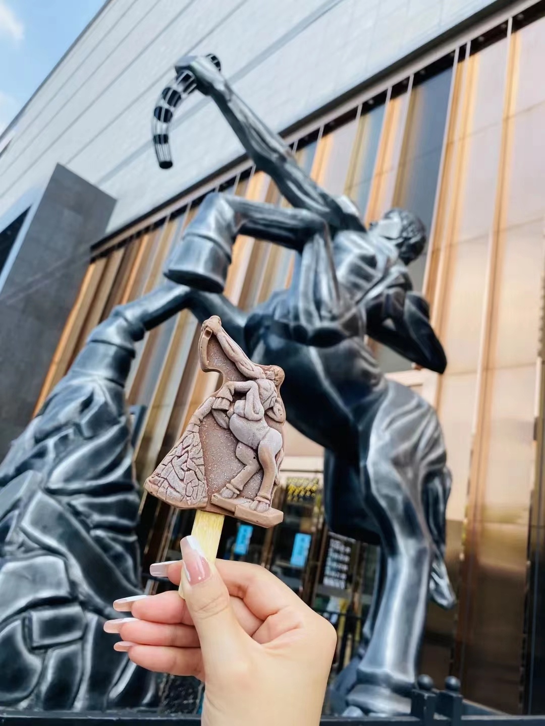 近两年,武商广场开始为两座雕像打造IP,推出了文创雪糕、巧克力等“周边”,相似度拉满。