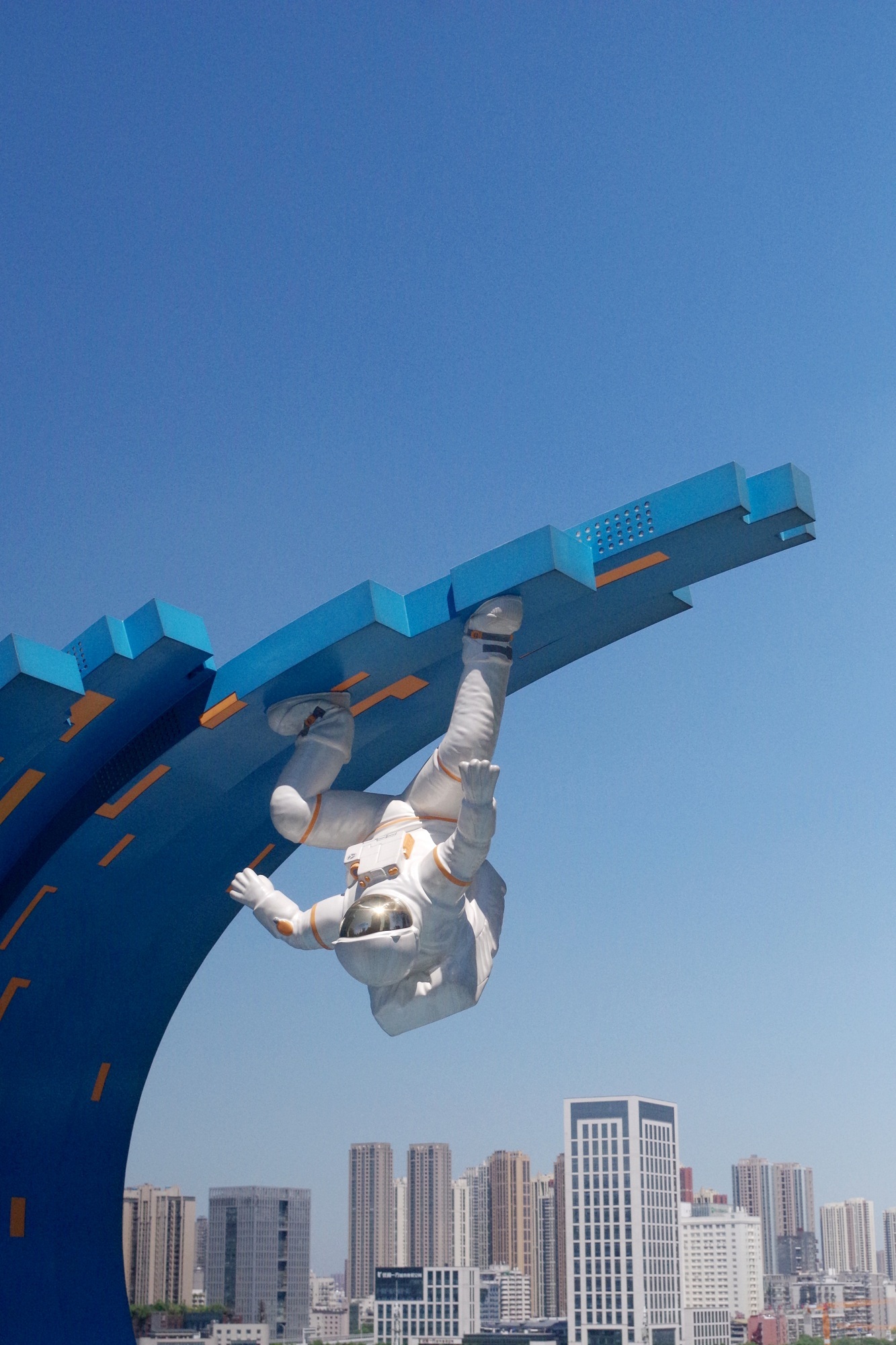 从开业起,江宸天街的星空天台就是吸引无数市民的网红打卡地,其中点缀着不少宇航员元素的雕塑。
