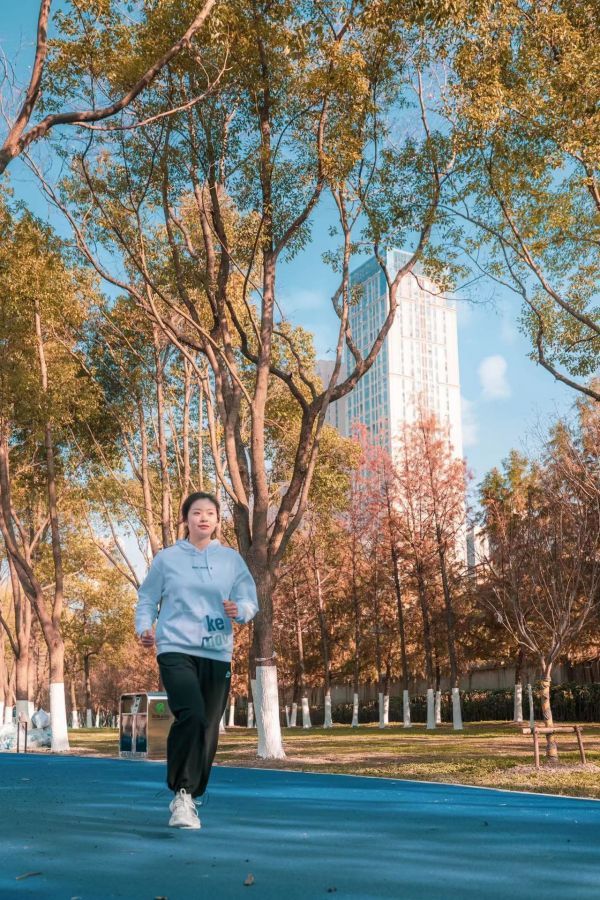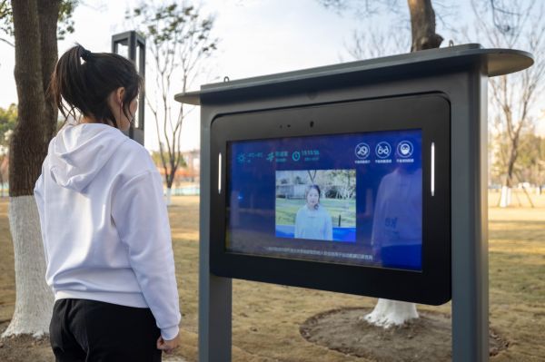 公园里的跑道也较传统公园有了较大提升,湖蓝色的健康跑道不止是更能保护膝盖的全塑胶铺成,而且有“智慧”。常青公园管理处主任连建辉介绍,从公园北面入口经人才长廊抵达健康跑道,栋梁阁一左一右各设一根智能人脸识别杆,在运动信息显示屏上成功注册的游客,都可以通过人脸识别技术记录跑步成绩。“不光可以看到个人成绩,整个公园的注册者还能形成排行榜。”连建辉说,“约上三五好友来打卡测速,或者孩子们互相比拼,跑步这项运动也可以玩得很有趣,很有社交感。”