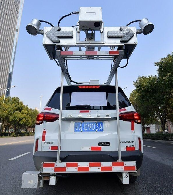 2月26日下午,在汉口青年路,一台车身标有“道路综合检测车”也在路面巡检。只见车后支架上有两台补光灯,车前车后各有一台高清摄像头。