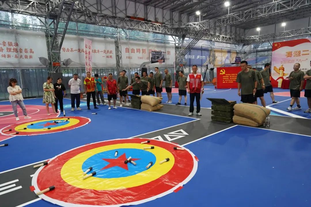 最有看头的掷“手雷”项目,它考验的是选手的投掷力度和角度,来自“勇敢拼搏队”的一名选手瞄准靶心、准确定位后,“砰”地一声,将道具“手雷”以迅雷不及掩耳之势抛出击中了靶心,赢得了现场观众的连连喝彩。