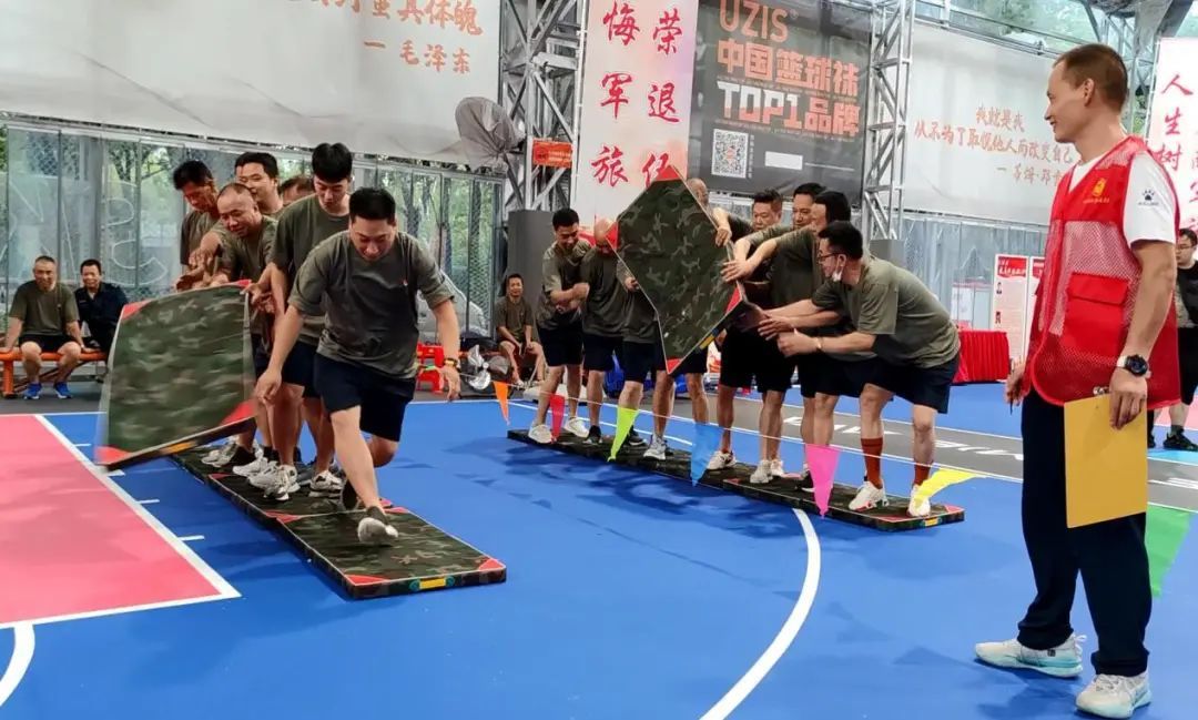 最后一个比赛环节——团队训练,10名选手排成一列,每人站在一块垫子上,每队最后一名选手将队伍最后的垫子依序传递给前排进行铺桥,整个场面紧张有序,加油声、呐喊声此起彼伏,仿佛所有选手的军魂都在此刻点燃,响亮的口号、协调的步伐,最终“奋斗前进队”发挥了团结协作、和谐友爱的团队精神,以傲人的成绩夺得此次运动会的头魁。