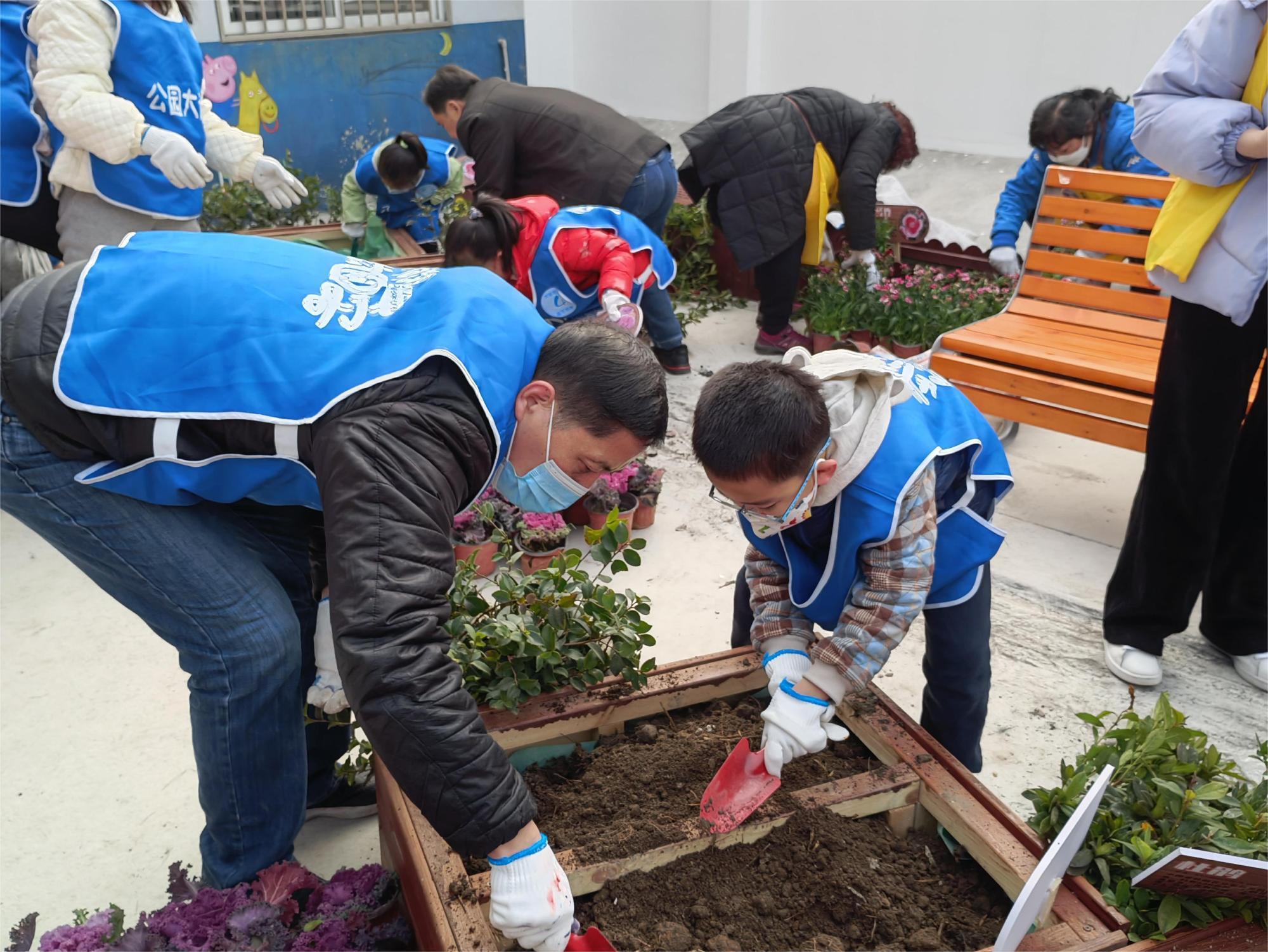 唐家墩街道八古墩社区党员和居民参与顶琇晶城花园改造。