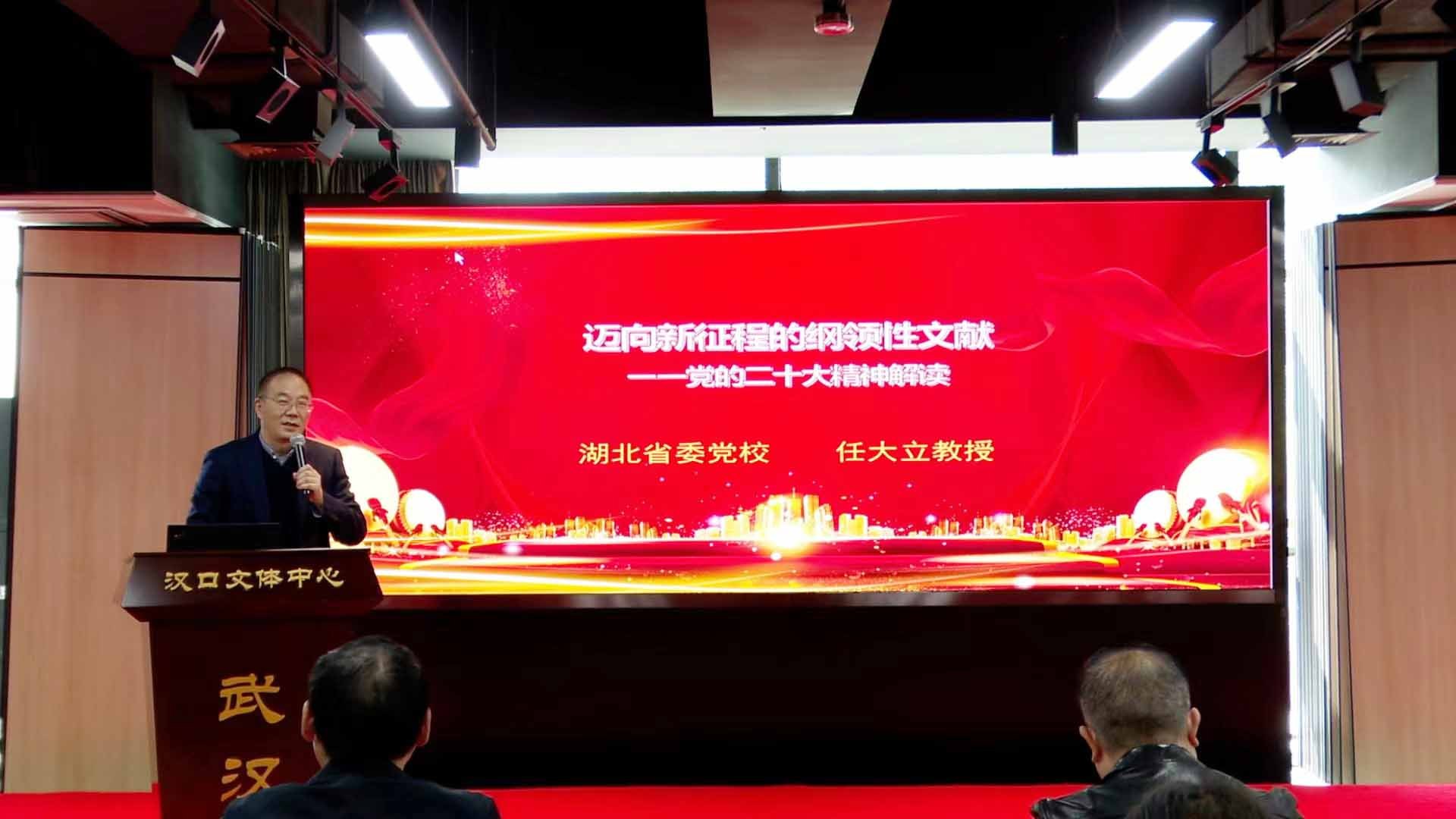 活动现场,中共湖北省委党校教授任大立作题为“迈向新征程的纲领性文献——党的二十大精神解读”的讲座,围绕党的二十大的主题和议程、党的二十大报告的基本精神、党的二十大的重大意义进行了系统阐述和深刻讲解。