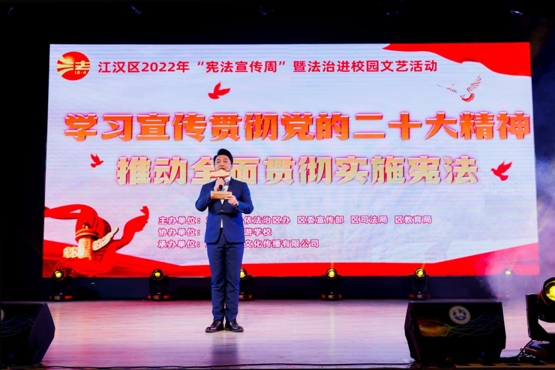 为推动全民学习宣传贯彻党的二十大精神,全面贯彻实施宪法,弘扬宪法精神,树立法治信仰,近日,由武汉市江汉区委依法治区办、区委宣传部、区司法局、区教育局联合主办、武汉市旅游学校协办的“2022年江汉区‘宪法宣传周’暨法治进校园文艺活动”上线云上平台。