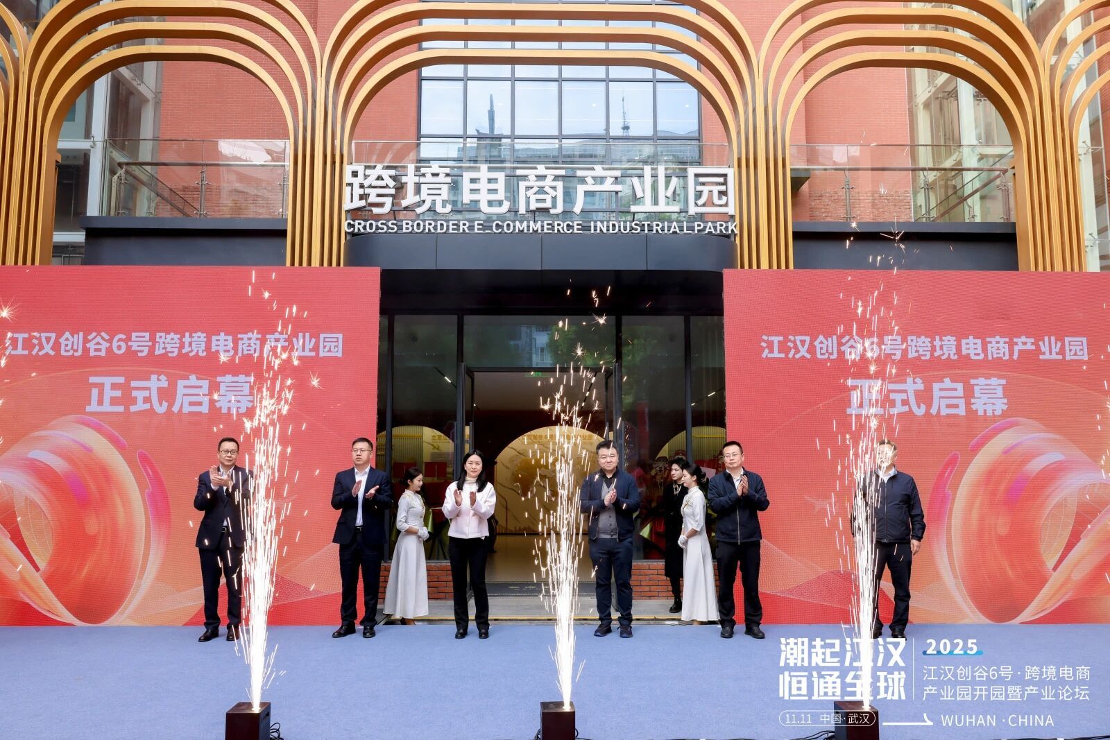 11月11日,江汉创谷6号跨境电商产业园举行开园仪式。本次活动以“潮起江汉·恒通全球”为主题,采用双语全球直播形式,汇聚政府领导、行业专家、企业代表及海外合作伙伴代表,共同见证江汉区在深耕数字贸易、推动外贸高质量发展的道路上的重要里程碑。区委书记叶文静,区委副书记、区长郭小平,市商务局副局长刘亮,区委常委、区委宣传部部长赵陟,副区长张隽波出席活动。