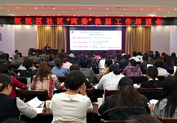 江汉区社区“两委”换届工作巡回督导组全体成员,各街道负责换届工作的领导干部共计300余人参加培训。