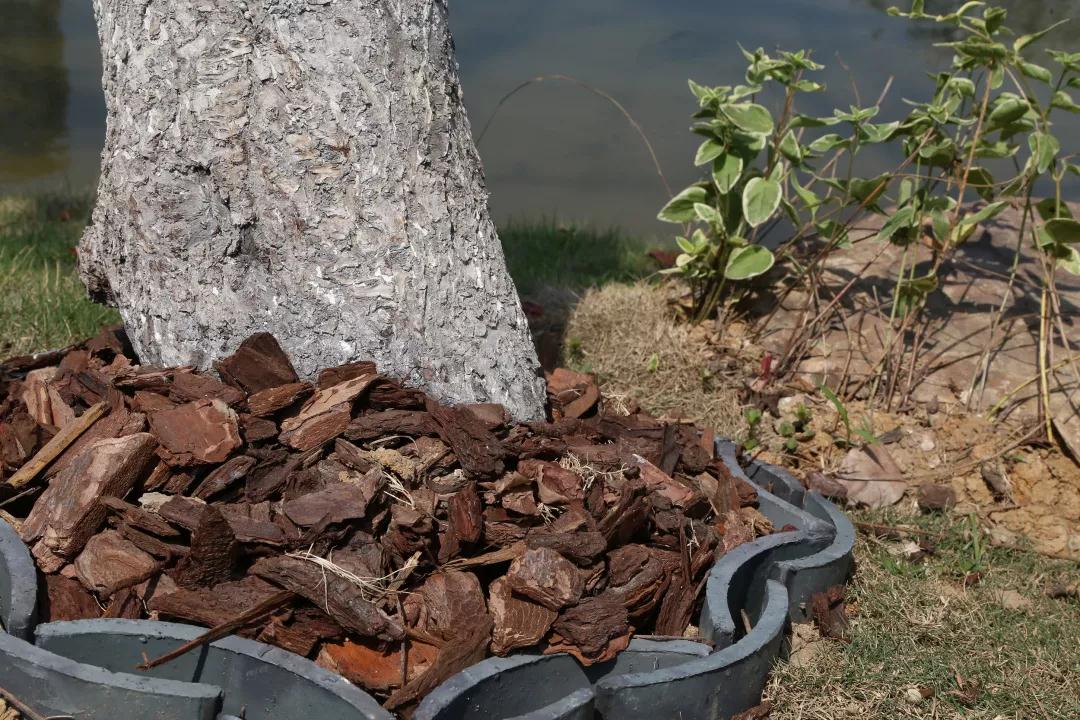 树皮透水不易板结,腐烂后还能堆肥;布瓦片阻隔杂草又美观