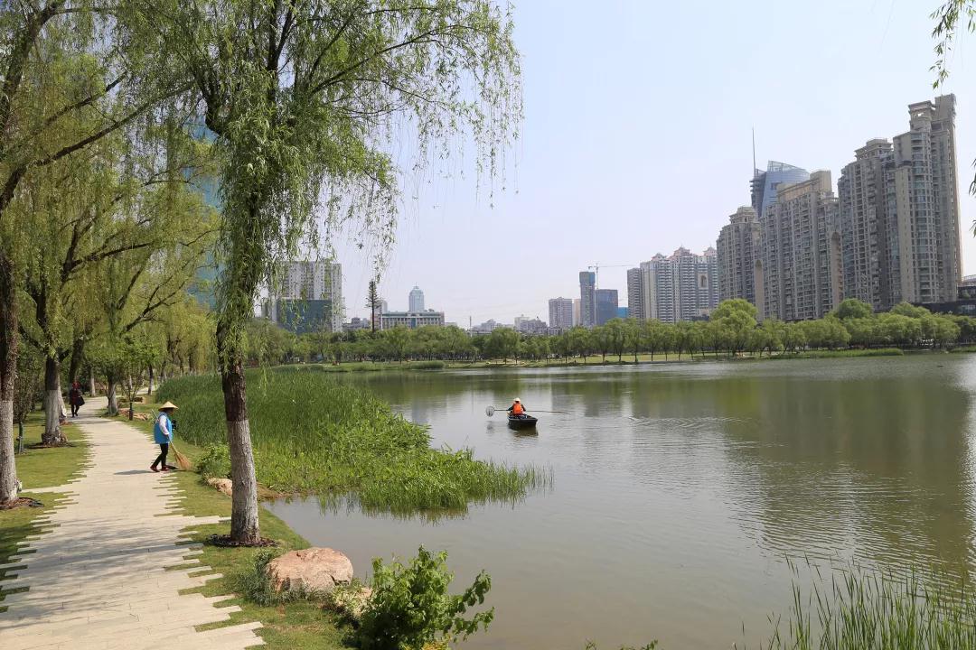 山水相依更有自然情趣,植物景观亮化的同时,西北湖水质进一步得到提升,现基本水质维持在Ⅳ类以上,在市水务局湖泊保护综合管理考核中,已连续6年排名全市第一。除了好的管护,进行实时监控和定期清理,人工湿地自净系统也发挥着重要作用。水岸分层绿植和水中水生植物,配上投放的食藻虫、小鱼苗等,构建出景观湖水生态系统,增强了水体自净化能力。