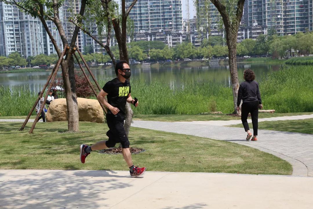当环境变好,大家也更乐意来游玩。遛娃的、健身的、采风的、散步的……西北湖公园里人来人往,满是生活气息。待得天色渐暗,人流却不曾减少,日光收敛后斑斓灯光开始绽放。