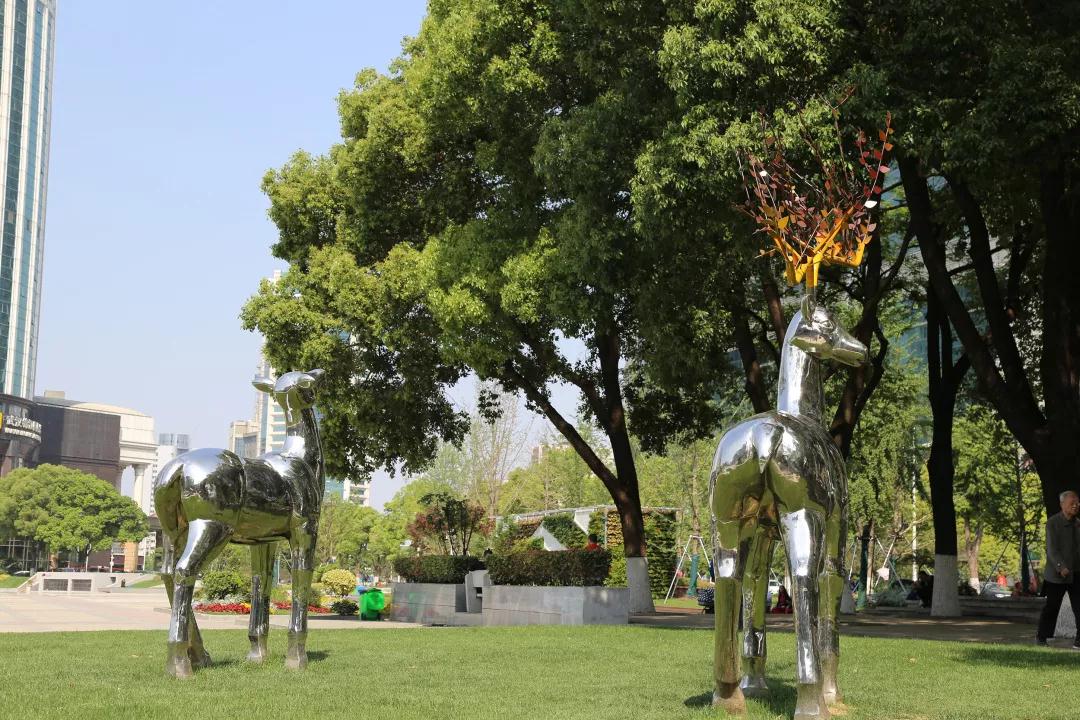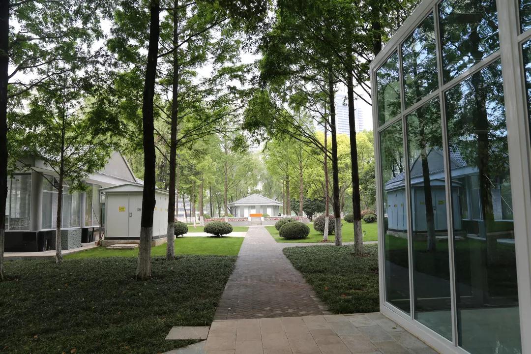花镜:平地起坡增强立体感,排布高层、中层植物、低矮灌木和地被植物,点缀花草矮灌相“依偎”,五彩缤纷,高低错落。花镜虽面积不大,每一处却都包含四季美景,春有海棠、樱花,秋观银杏、红枫,夏天一片繁绿,冬天茶梅点缀。