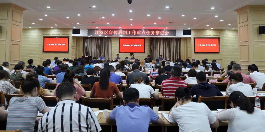 为总结交流上半年宣传思想工作推动落实情况,深入推进宣传思想工作强起来。7月29日,江汉区宣传思想工作重点任务推进会在区机关五楼多功能厅召开。