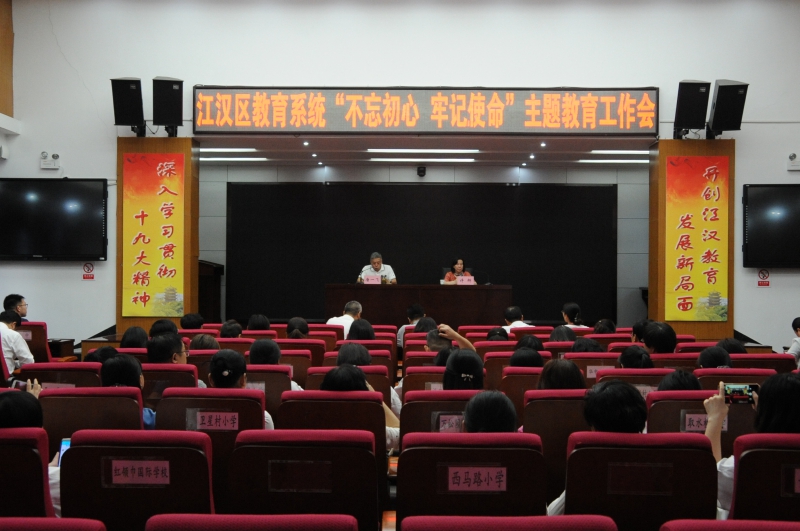 9月20日下午,江汉区教育局党委召开全系统“不忘初心、牢记使命”主题教育工作会议,传达学习习近平总书记在“不忘初心、牢记使命”主题教育工作会议上的重要讲话精神以及中央和省、市、区主题教育工作会议精神,安排部署全系统主题教育工作。