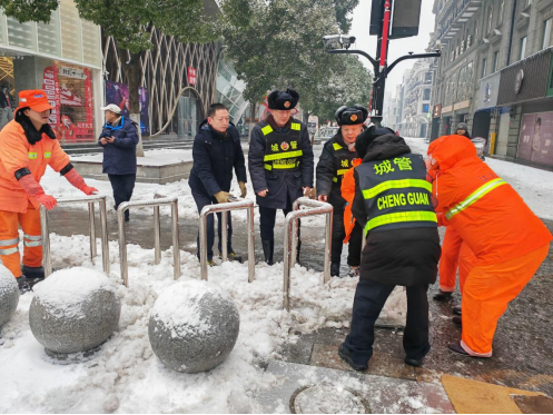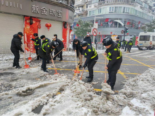 为全力保障街区道路畅通和居民出行安全,2月4日上午7点,江汉路步行街区综合服务中心、区城管执法中队、环卫人员、周边社区等多个部门,以雪为令,迅速行动,组织党员干部60余人投入街区扫雪除冰行动,齐心协力为群众扫出安全出行路。
