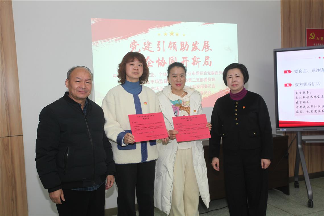 最后,江汉区市场监督管理局党组成员、副局长黄涵就双方结对共建提出了期望,她勉励双方以此次“政企协同开新局、党建创新助发展”主题党日活动为契机,以“结对共建”为基础,以增强基层党组织凝聚力、战斗力,更好服务企业发展为目的,以主题实践活动为平台,努力将双方的党建互助互进的政治优势转化为双方服务江汉经济社会发展,服务辖区企业的实际行动。通过结对共建,双方将要强化执政意识,担当意识、服务意识,做实做细做好服务联动,品牌联创,不断创新党建工作举措,推进结对共建出实效,进一步凝聚党建新活力,激发发展新动能。