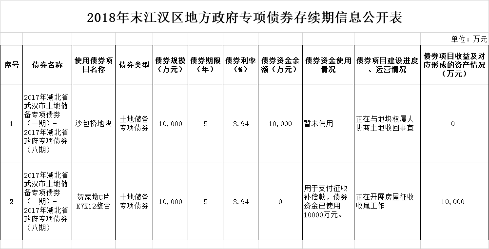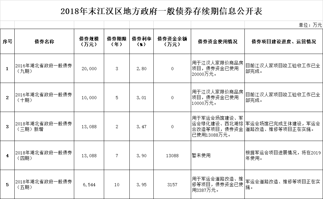2018年末江汉区地方政府债券存续期信息公开表