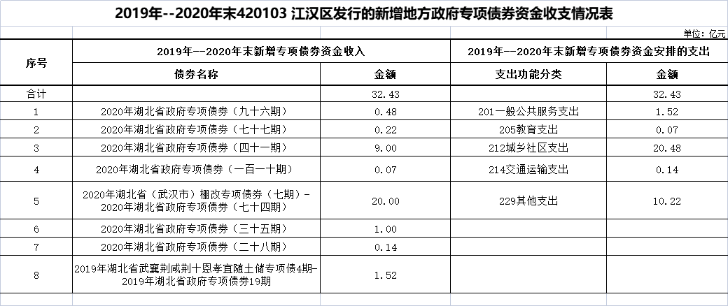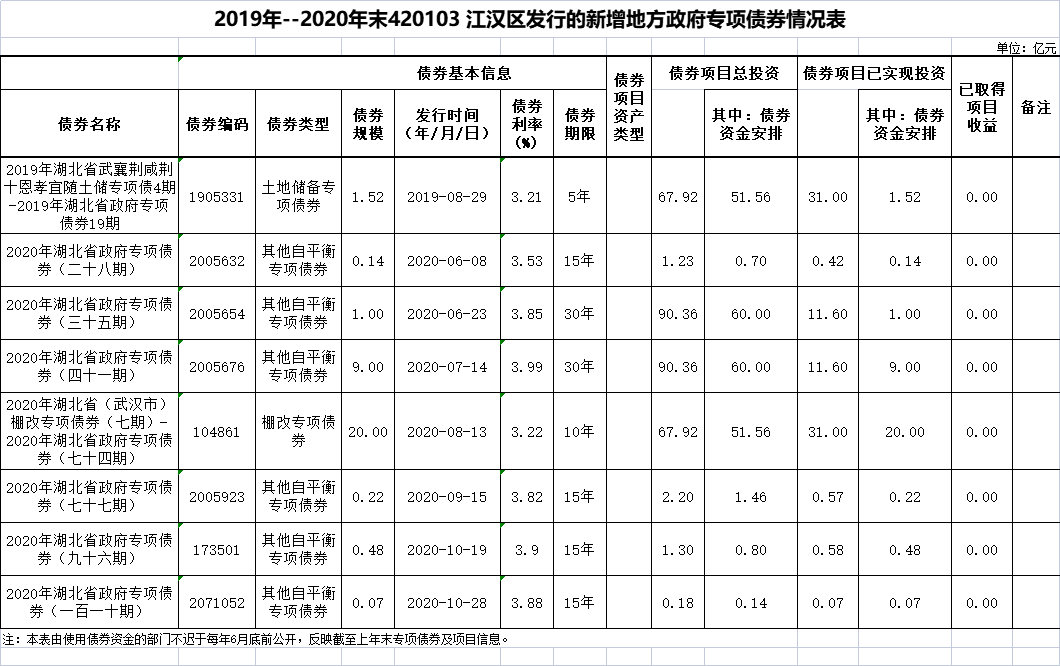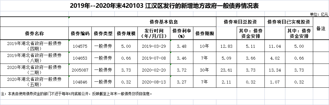 2021年江汉区政府债券存续期信息公开情况表